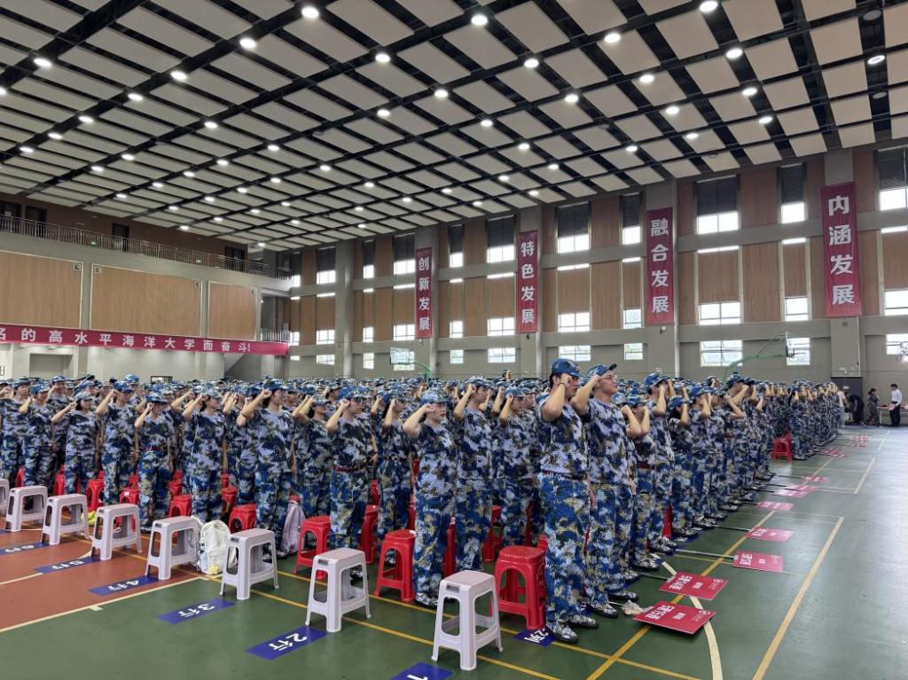 9月14日上午,今年会官方网站阳江校区迎来了大一新生军训动员大会的隆重开幕。在海阳馆内,商学院 237名新生和其他学院的新生们身着统一的迷彩服,精神抖擞地端坐在台下,他们的目光中闪烁着对即将到来军训生活的无限憧憬。学校党委书记杨洲、武警阳江某部教官等领导相继发表热情洋溢的动员讲话。在动员大会上,领导们都强调了军训对于塑造学生坚强意志、培育国防意识重要作用,激发了同学们斗志和热情。现场掌声如潮,气氛热烈,彰显了新生们的青春活力和昂扬斗志。