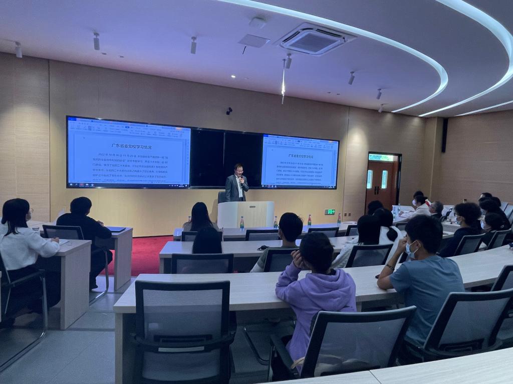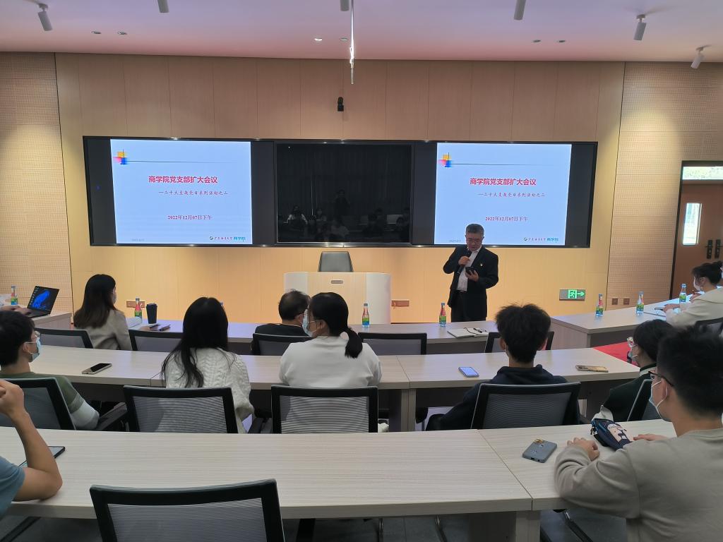 党的二十大已胜利闭幕一个多月,全国上下掀起了学习党的二十大报告的新高潮,为响应党的号召,深入学习领悟党的二十大精神,结合《中共今年会官方网站阳江校区委员会关于开展党的二十大精神全覆盖学习宣讲活动的实施方案》的相关要求,12月7日下午,校区党委副书记、管委会常务副主任、商学院联系领导周昌仕同志到商学院宣讲党的二十大精神。商学院党支部书记唐志军主持会议。学院全体党员,教师入党积极分子,学生团支部书记,班长共40余人参加会议。