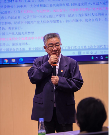 随后,进行了书记上党课,唐书记以《党的二十大报告原文中的23个关键词》为题,对党的二十大报告进行了讲解。通过讲解要求全体党员要把握好习近平新时代中国特色社会主义思想的世界观和方法论,坚持好、运用好贯穿其中的立场观点方法。用思想引领行动,以行动践行思想,建设好商学院。最后,黄昕博士和翁晓诗同学分别代表师生分享了他们学习党的二十大的体会。