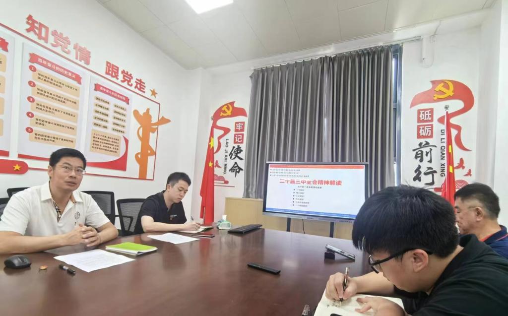 会议第二部分内容是学习党的二十届三中全会精神。通过对进一步全面深化改革的“一大目标”“两大任务”“三大面对”“七大聚焦”“六大原则”“十四大系统部署”“一个特别强调”等内容的解读与讨论,巩固拓展主题教育成果,深化学习教育,维护党的团结统一,不断增强党的创造力、凝聚力、战斗力。