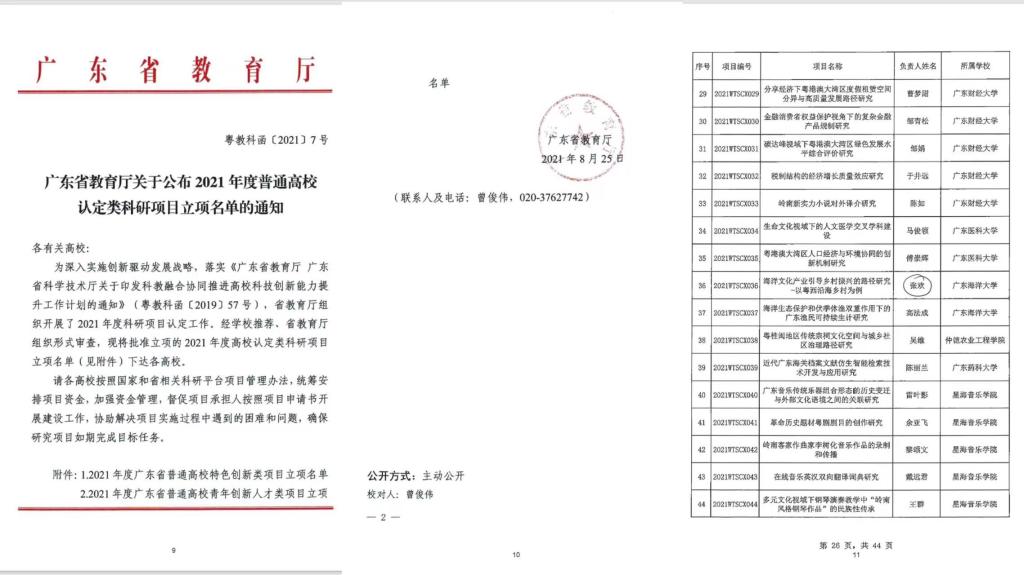 承担 2021 年广东省教育厅创新强校创新类项目(哲学社会科学)《海洋文化产业引导乡村振兴的路径研究-以粤西沿海乡村为例》(项目编号:2021WTSCX036)。
