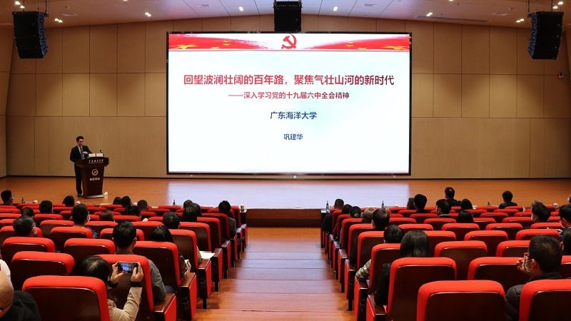 1月5日下午,阳江校区党委在海纳楼113报告厅举行学习贯彻党的十九届六中全会精神宣讲报告会。校党委书记曹俊明,校党委办主任、机关党委书记王明对,阳江校区党委副书记、管委会常务副主任周昌仕以及校区全体教职工、学生党员代表共100多人参加。本次报告会由学校党委理论宣讲团成员、学校马克思主义学院教授巩建华主讲,阳江校区党委委员、管委会副主任陈永强主持。结合党的十九届六中全会召开的国际背景与国内形势,巩建华教...