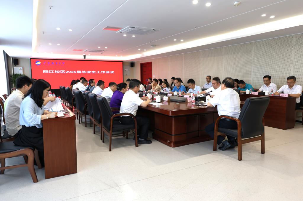 为深入推进首届毕业生工作,4月28日下午,阳江校区在海纳楼712召开了2025届毕业生工作会议。学校党委常委、副校长、阳江校区党委书记、管理办公室主任周昌仕主持会议,阳江校区党委副书记丁永成、麦冬宁,各学院党支部书记、院长、副院长,各职能部门、图书馆负责人,毕业班辅导员及相关工作人员参加了会议。周昌仕在讲话中指出,当前阳江校区首届毕业生工作已进入关键阶段,各单位部门要聚焦工作目标,主动担当、履职尽责,以...