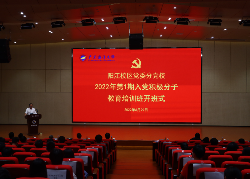 6月29日下午,阳江校区党委在海纳楼113报告厅举行校区党委分党校2022年第1期入党积极分子教育培训班开班式。校区党委委员、各党支部书记、组织员指导老师、100名入党积极分子参加。校区党委副书记、管委会常务副主任周昌仕教授作动员讲话,校区管委会委员、组织人事部负责人李鹏虹主持开班式。