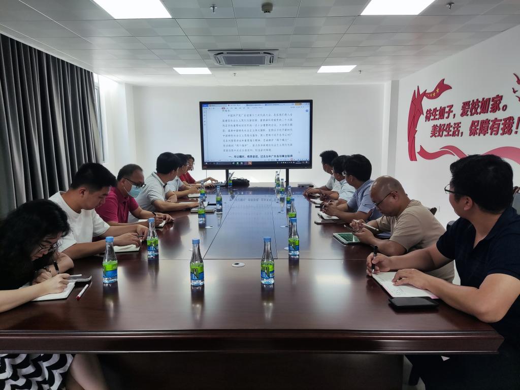 会议集体学习了广东省第十三次党代会精神。袁仁广领学了会议精神,强调要通过深入学习贯彻省第十三次党代会精神,强化思想认识,提高政治站位,结合岗位职责和工作实际,对新形势、新任务、新要求下的服务保障工作有全面深入的了解和认知,贯彻“待生如子,爱校如家”的宗旨和“美好生活,保障有我”的服务理念,进一步做好校区的后勤保障工作,