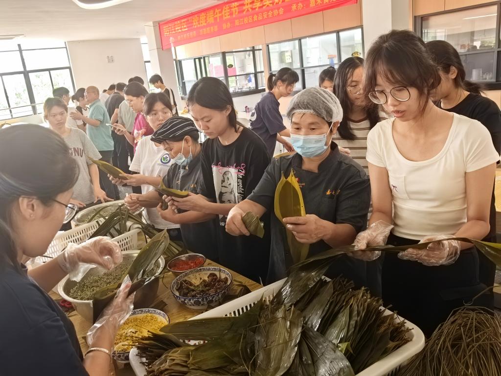 6月5日下午,“欢度端午佳节,共享美好生活”的包粽子活动在校区嘉禾食苑二楼举行。校区党委副书记陈永强出席活动并致辞,校区后勤服务部、团委及食品科学与工程学院的老师和校区学生90余人参加活动。