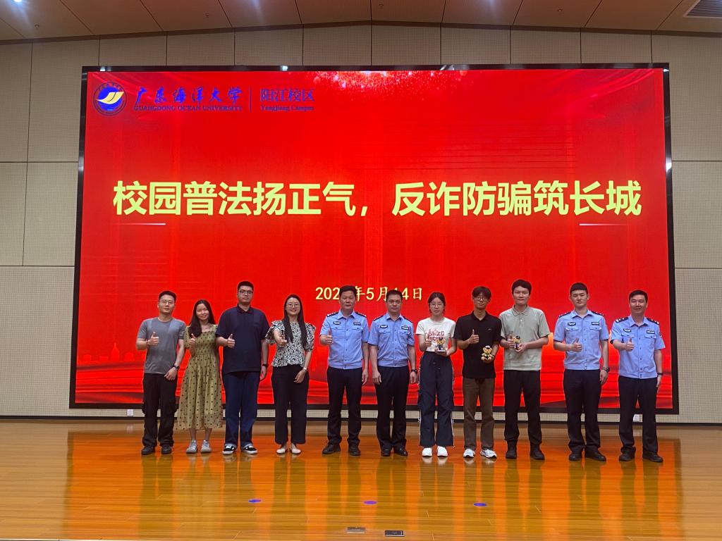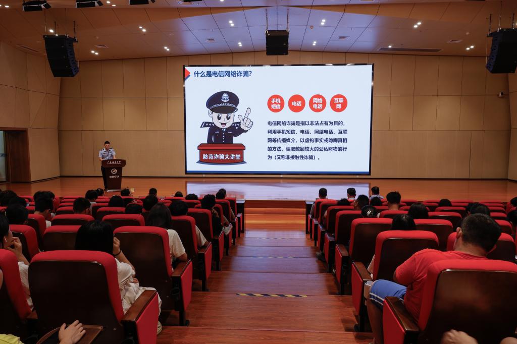 为增强师生防范诈骗意识,切实维护校园安全稳定,5月14日下午,阳江校区联合阳江市公安局于海纳楼113报告厅共同举办防诈骗知识专题讲座。活动由校区学生事务部陈凤老师主持,阳江市公安局江城分局法制大队二级警长冯金明、刑侦大队三级警长田时旺受邀担任主讲嘉宾,市公安局民警及校区师生代表300余人参与活动。