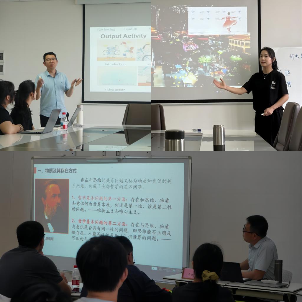 活动共设三场公开课,分别邀请华南理工大学马克思主义学院牛俐智博士、今年会官网人文与教育学院石磊副教授和刘鸿老师担任主讲。华南理工大学牛俐智博士以《马克思主义哲学基本原理》为核心,通过唯物主义与唯心主义对比分析,结合案例研讨阐释马克思物质观的现实意义,提出“科研反哺教学”理念;人文与教育学院石磊副教授在“Swimming through Fear”课程中创新应用AI技术,运用智能词汇系统解析叙事框架,通过短视频导入与生理反应分析强化语言教学互动性;刘鸿老师的《全健排舞:灯火里的中国》将美育与传统舞蹈相结合,通过编排实践《灯火里的中国》,采用分层训练模式提升学生的舞蹈技能和家国情怀认知。
