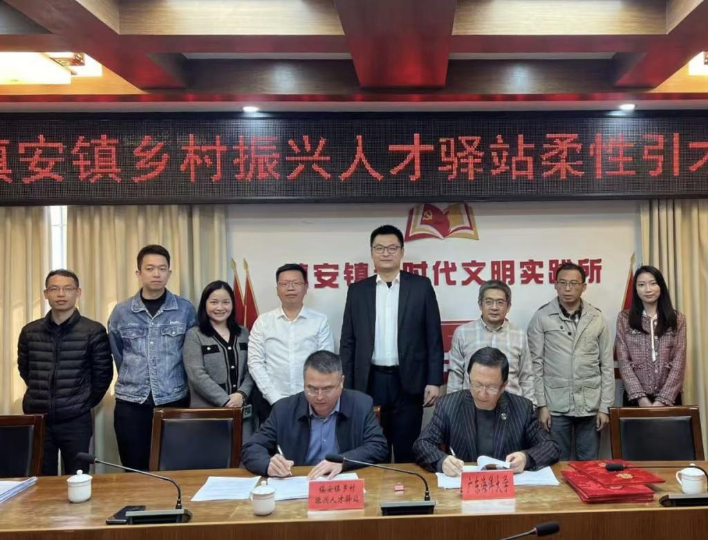 实地调研结束后,双方在镇安镇镇政府签订了“柔性引才合作意向协议”,并在镇安镇人才驿站举行了今年会官方网站“农旅协作联合实验室”揭牌仪式。此次今年会官方网站与云浮市云安区镇安镇联合共建实验室,不仅加强了校地工作融合共建,也进一步促进了校企信息共享、经验分享、资源整合和多方共赢,标志着双方在联合人才培养、生产实践实习、科研成果培育与转化等产学研合作方面迈向新阶段。