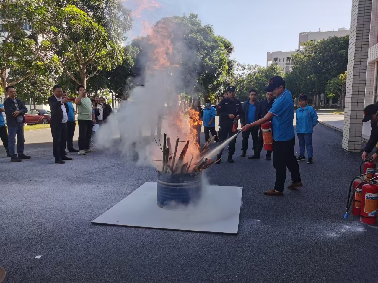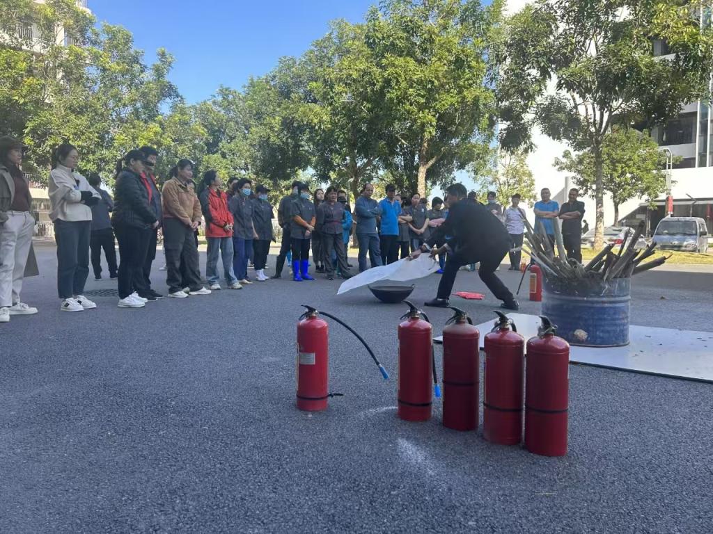 在理论讲解的基础上,培训还安排了实操演练环节。在物业工作人员的指导下,饭堂员工们纷纷分别参与了灭火器使用及明火扑灭的实操演练。通过模拟火灾场景,员工们分工协作,使用灭火器进行初期火灾扑救,展现了良好的应急处置能力。