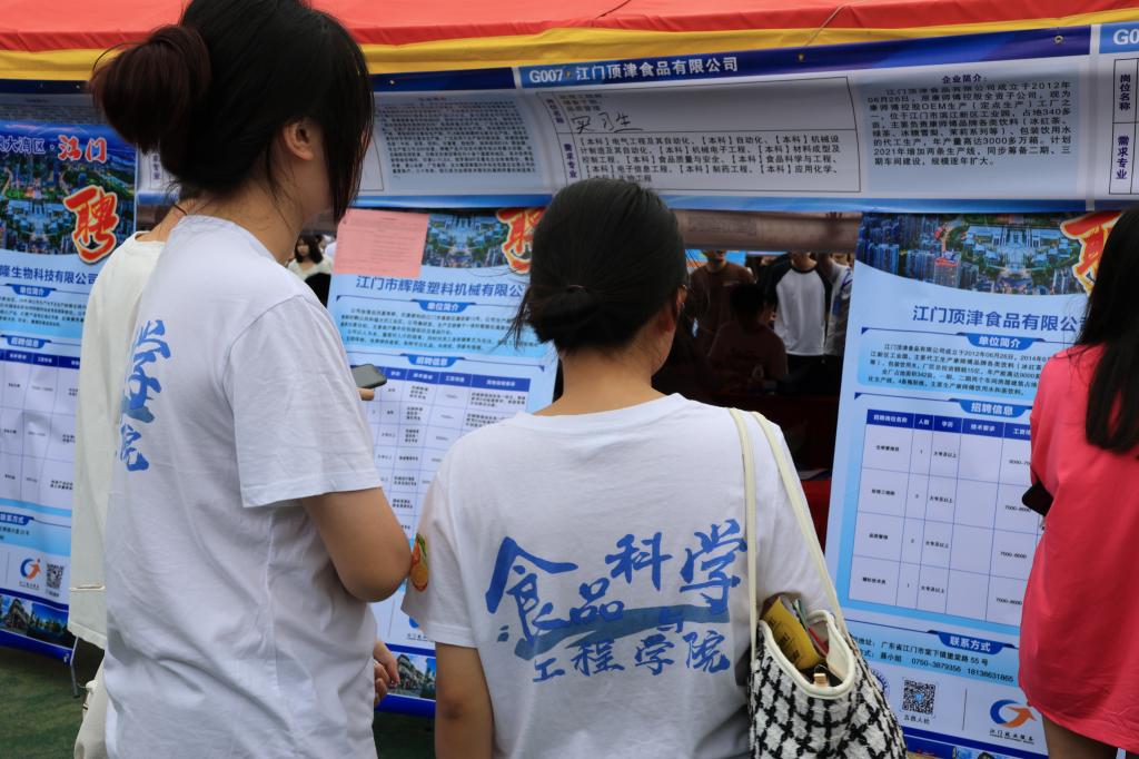 本次广东省公共就业服务进校园粤西片区专场活动线下会场设立于今年会官网东区运动场,设置主会场和就业创业服务市集两大功能区。参会企业343家,涵盖设计、金融、教育、网络科技、文化等多个热门行业,提供岗位超6000个。在招聘会现场,同学们通过查看企业及岗位信息、现场观摩面试过程、与企业HR面对面交流、政策咨询、求职体验等深入参与招聘活动,了解市场所需、企业所盼、岗位所要。食品科学与工程学院的准毕业生吴同学说:“我咨询了几家食品企业,了解了企业对毕业生的能力要求,让我明确了未来职业方向,决定利用大学的剩余时间好好提升技能,并针对性积累经验。”计算机科学与工程学院就读大三的张同学则表示,观摩招聘会后,深刻体会到了就业竞争的激烈,也了解到相比学历,企业更看重的是面试者的综合素质和学习能力,让他意识到在学校除了学习之外,还应注重培养自己的综合实践能力和良好的沟通能力。此外,招生就业协会学生骨干还就招聘会组织、筹划等细节工作进行了现场调研学习。