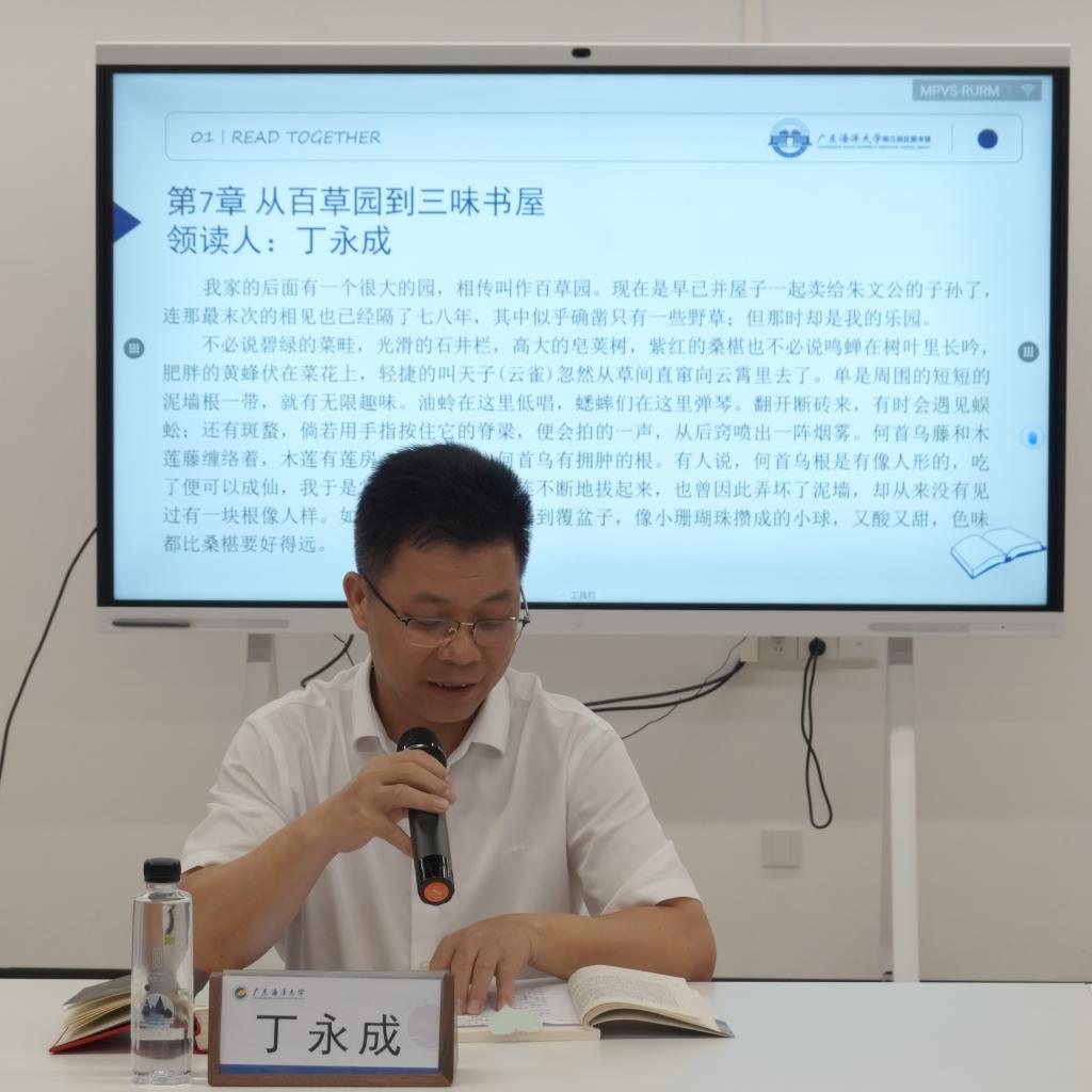 共读环节中,丁永成与董金海分别担任领读人,引领参与者们共同诵读了《朝花夕拾》与《红岩》的精选篇章。在丁永成的带领下,众人沉浸在鲁迅先生笔下描绘的童年世界,品味其文字间流露的妙趣横生与深刻洞察,体验大师对过往岁月的独特记忆与反思。董金海则引领大家步入《红岩》的历史画卷,通过共读传递出革命先烈的英勇事迹与坚韧精神,弘扬了中华优秀传统文化的核心价值。