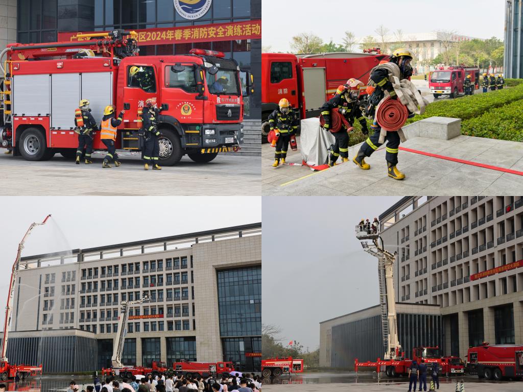 为深入贯彻习近平总书记关于安全生产重要指示批示精神,贯彻落实教育部关于教育系统安全工作的部署,进一步加强校区消防安全宣传教育工作,提高广大师生的消防安全意识和火灾自防自救能力,3月20日下午,校区联合阳江市消防救援支队开展2024年春季校园消防安全疏散演练活动。校区党委副书记陈永强、阳江市消防救援支队支队长龙国锋、后勤服务部负责人周斌、学生事务部负责人翁江峰等出席演练活动。阳江市消防救援支队队员、校区后勤保障部、学生事务部全体人员、各学院辅导员及学生代表、消防志愿者协会成员等近400人参加了本次活动。演习活动由周斌主持。
