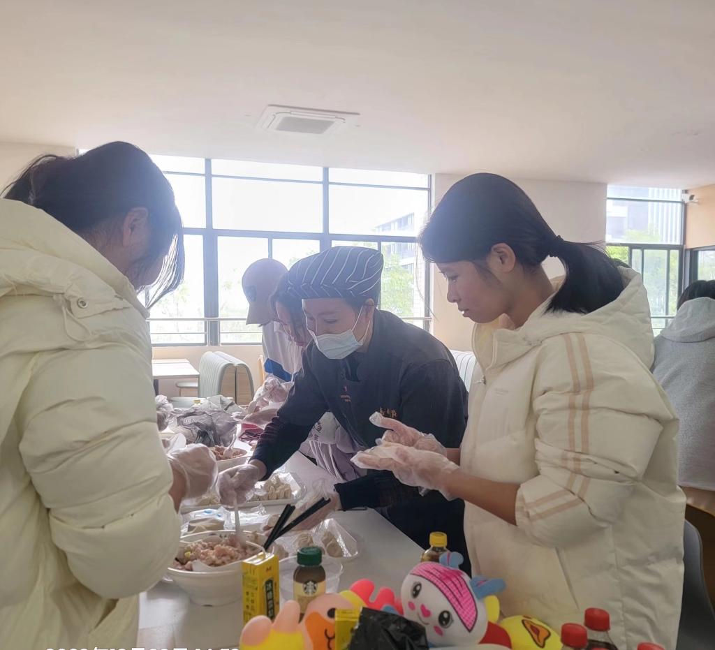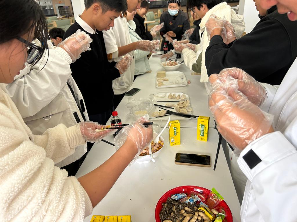 随着主持人宣布包饺子煮汤圆活动开始,同学们分成12组,兴致勃勃地投入到了包饺子和煮汤圆的过程中。嘉禾食苑的厨师们也参与其中,为同学们展现包饺子和煮汤圆的技巧。在大家欢声笑语中,一盘盘热气腾腾的饺子和汤圆被陆续端上餐桌。吃着自己亲手做的饺子和汤圆,同学们脸上都乐开了花,倍感劳动的快乐和校园生活的温馨幸福。