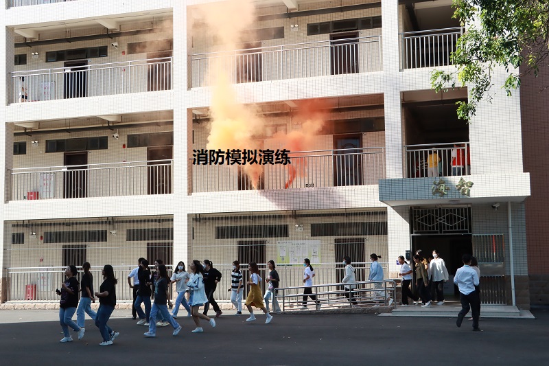 随着总指挥一声令下,演练活动拉开了序幕。学生公寓走廊烟雾燃起,火灾警铃响起,老师、志愿者们迅速组织同学们从宿舍有序地疏散撤离至安全区,报警工作人员第一时间向校园110报警台报告火情,灭火人员以最快速度赶到火警现场,投入灭火救灾战斗,救护人员和医护人员也赶赴现场开展现场救护工作。最终,火灾被扑灭,全体人员安全疏散。