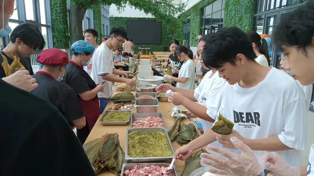 传统节日端午节到来之际,为营造温暖和谐的节日氛围,增强学生对传统节日及传统文化的认同感和幸福感,6月2日下午,后勤保障部在桃李食苑二楼水吧开展了校区首届“粽叶飘香迎端午”体验活动,以包粽子的形式迎接端午节,弘扬传统文化,涵养家国情怀。