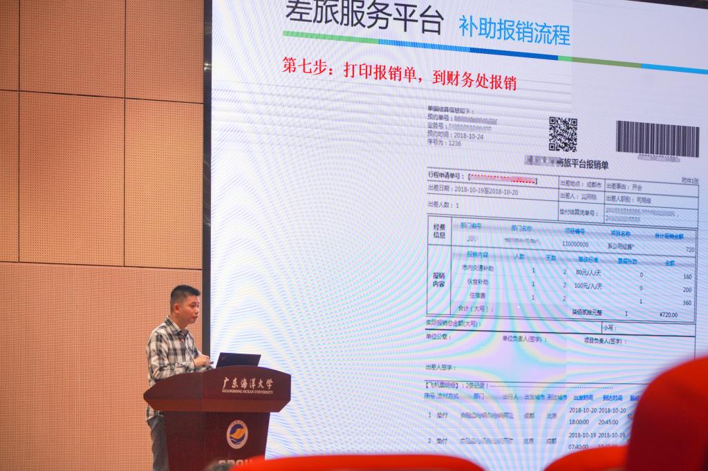 宣讲会上,财务处信息科何思登重点介绍了差旅服务平台,通过实例解析及具体操作示范,对平台的使用方法进行了详细的介绍。该平台的投入使用,将大大方便教职员工办理差旅相关如出差审批、交通购票、住宿预定、事后报销等手续。