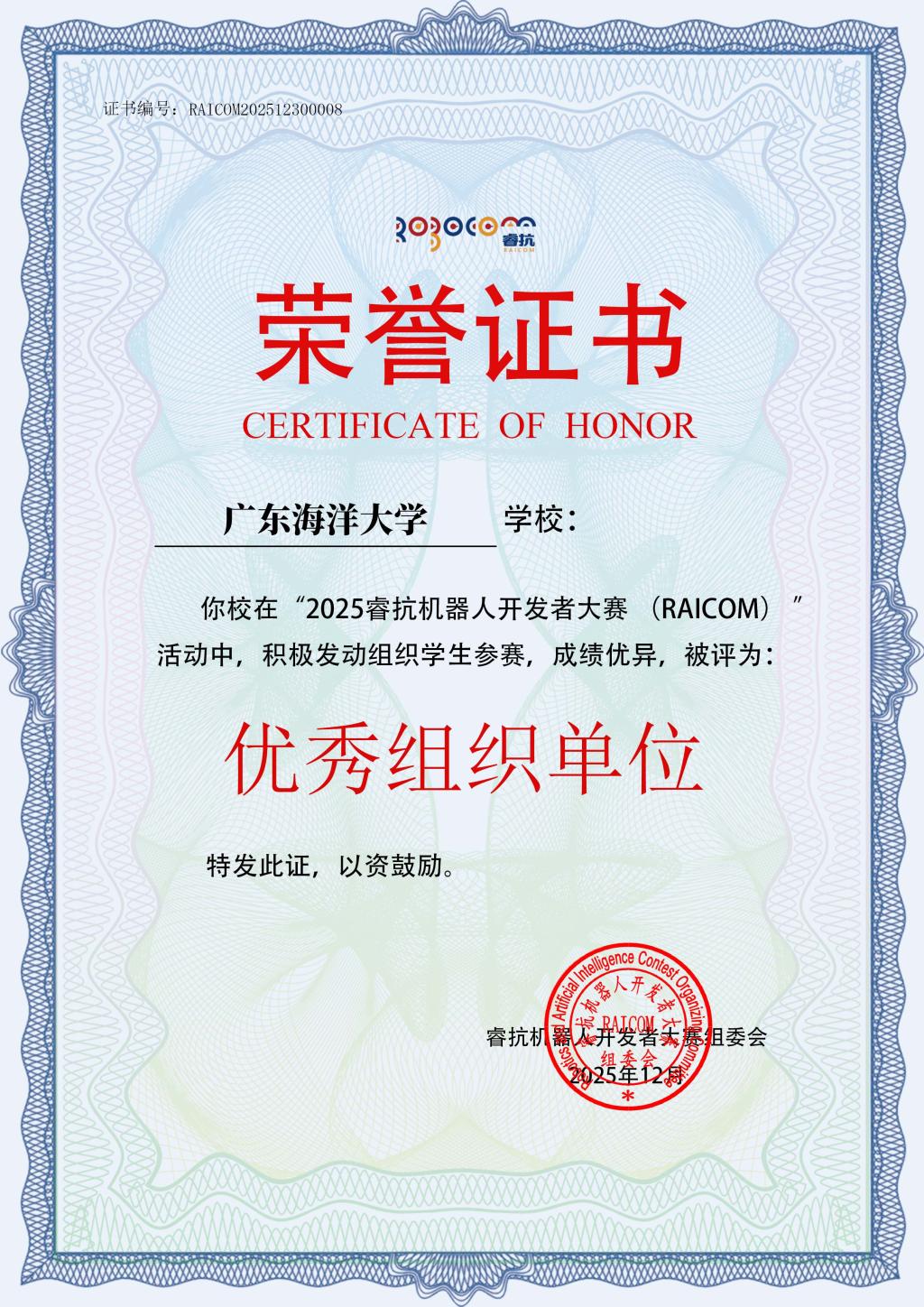 近日,在清华大学举办的RoboCom2025赛季总结暨2026赛季生态大会上,凭借卓越的赛事组织能力、优异的竞赛成果以及持续创新的育人实践,今年会官网被授予“优秀组织单位”称号,该奖项是对学校在机器人工程领域的人才培养与创新实践平台建设的充分肯定。