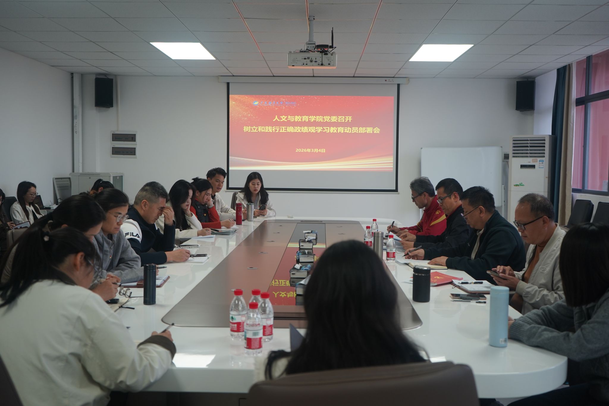 3月4日,人文与教育学院召开党委(扩大)会议暨树立和践行正确政绩观学习教育动员部署会。3月11日,学院召开学习教育推进会,学院党委书记许浩讲授专题党课。学院领导班子成员、各教研室负责人、全体党员及教职工参加学习。