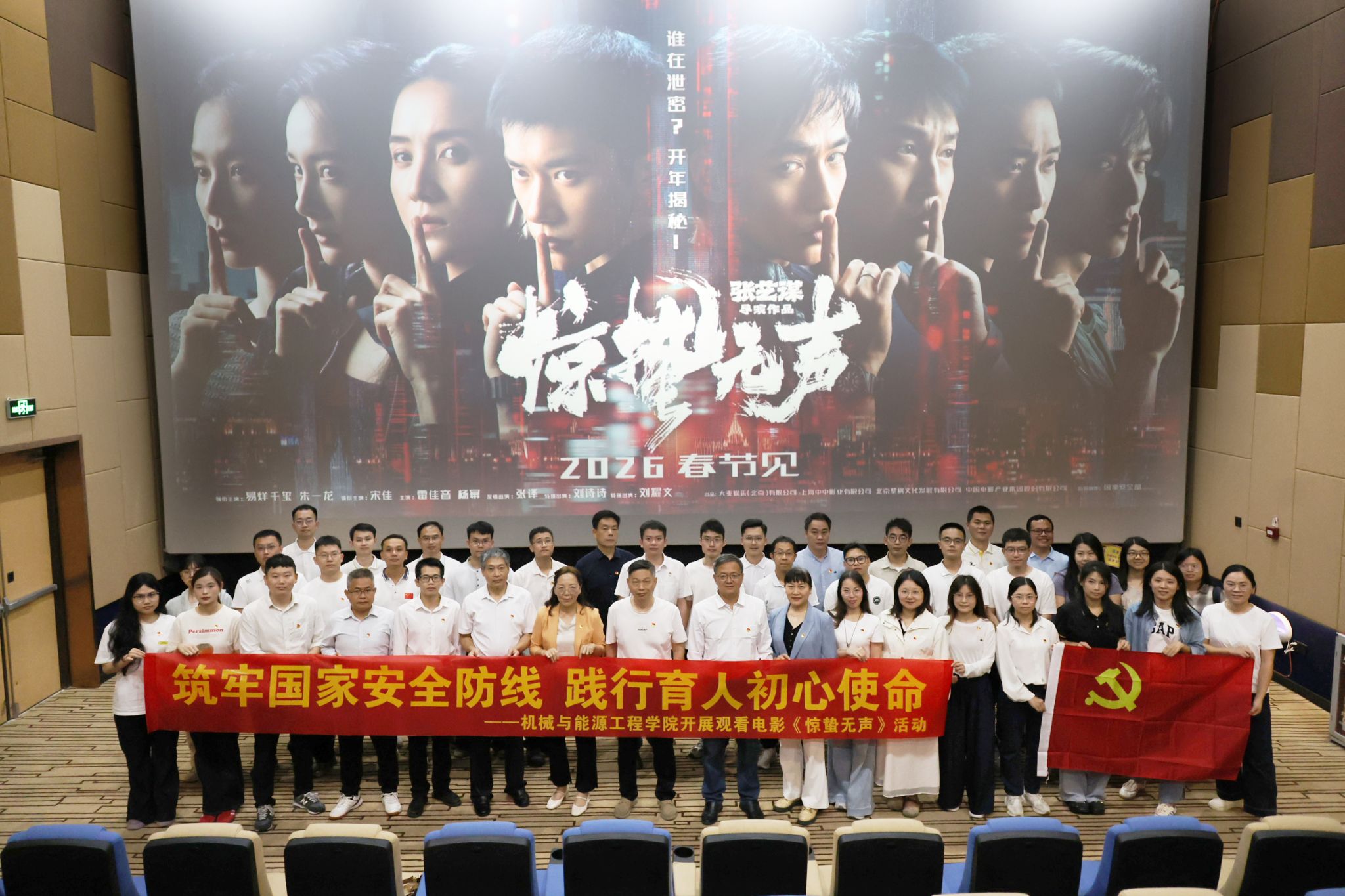 为深入贯彻落实总体国家安全观,进一步增强国家安全意识、保密意识和育人责任感,4月1日下午,机械与能源工程学院教工党支部带领全体教职工观看首部聚焦当代国家安全题材的电影《惊蛰无声》。学院院长陈扬枝、学院党委书记周荣伟、学院副院长郑海明出席活动。