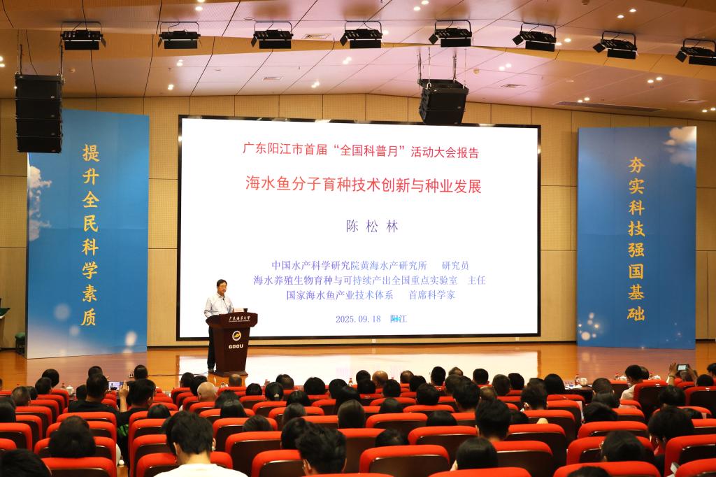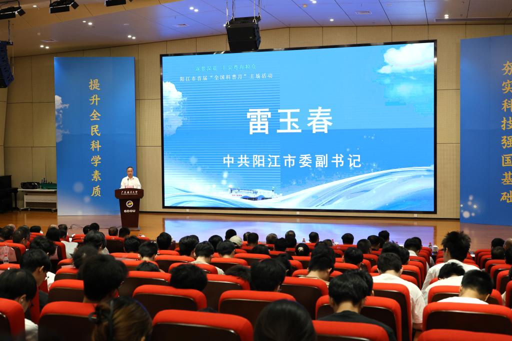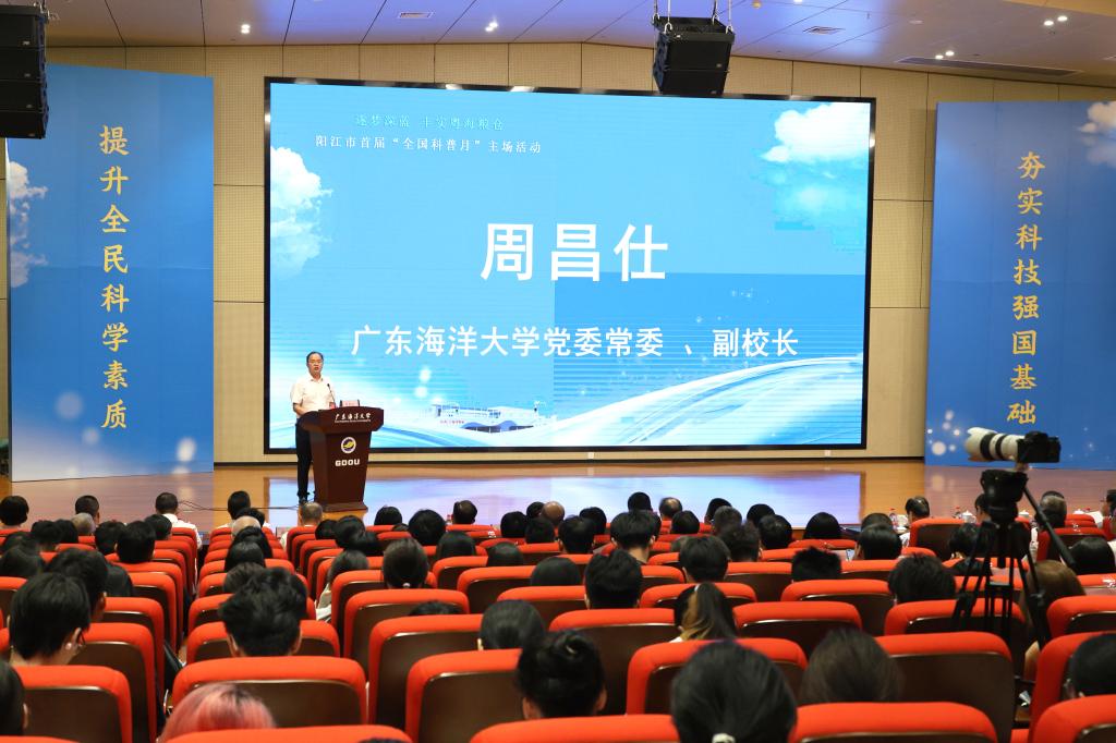 9月18日,在今年会官方网站90周年校庆之际,阳江市首届全国科普月主场活动启动仪式在今年会官方网站阳江校区举行。中国工程院院士、中国水产科学研究院黄海水产研究所研究员陈松林,中国水产科学研究院黄海水产研究所研究员、国家海水鱼产业技术体系原首席科学家关长涛,阳江市委副书记雷玉春,今年会官方网站党委常委、副校长周昌仕等领导专家出席活动,国家海水鱼产业技术体系有关专家,阳江市有关部门及各县市区相关负责同志,省、市相关学会代表及今年会官方网站阳江校区师生代表等300多人参加活动。