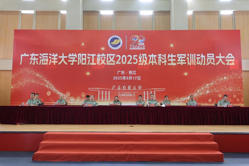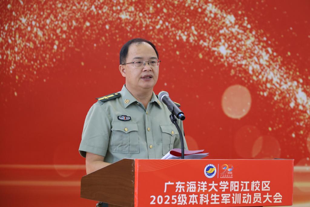 9月17日上午,阳江校区2025级本科生军训动员大会在海阳馆举行。学校党委常委、副校长、阳江校区党委书记、管理办公室主任周昌仕,武警阳江某部教官代表出席大会并作动员讲话。阳江校区党委副书记、军训团团长丁永成主持大会。阳江校区党委副书记、军训团政委麦冬宁宣读各军训营营长、教导员名单。各学院分管学生工作的领导、军训团成员,各学院负责带训管训和保障服务的老师,以及阳江校区全体2025级本科生参加大会。