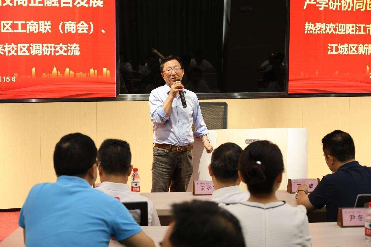 5月15日下午,阳江市江城区委统战部副部长、江城区工商联党组书记、常务副主席黄冬华率领江城区工商联、新阶联80余位企业家代表到校区开展“产学研协同创新·校商企融合发展”主题调研交流活动。校区党委副书记丁永成、麦冬宁,各学院、部门负责人参加调研。