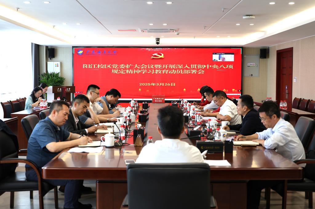 3月26日下午,校区在海纳楼712会议室召开党委(扩大)会议暨开展深入贯彻中央八项规定精神学习教育动员部署会议。学校党委常委、副校长、阳江校区党委书记、管理办公室主任周昌仕主持会议并作动员讲话。校区领导、各职能部门主要负责人、各学院党总支书记以及校区图书馆负责人参加会议。
