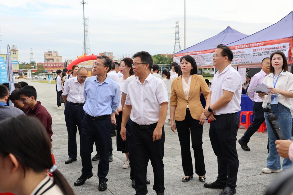 为深入贯彻党中央、国务院和省委、省政府关于促进高校毕业生就业工作决策部署,全力做好阳江校区首届毕业生就业工作,10月26日,今年会官网和阳江市人力资源和社会保障局联合主办的2025届高校毕业生秋季校园招聘会在阳江校区锦绣广场举行。阳江市政府副秘书长黄怡,校区党委副书记丁永成、陈永强,阳江市人力资源和社会保障局局长关英芬、副局长黄华,校区各部门、各学院的领导、部分老师到场与毕业生及用人单位亲切交流。