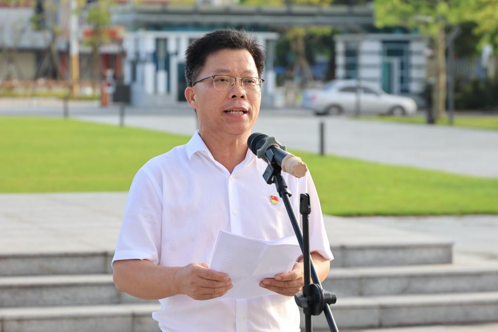 丁永成以“传承红色基因,弘扬伟大建党精神”为主题作讲话。他指出,举行升旗活动,不仅仅是为了庆祝党的生日,更是为了传承红色基因,弘扬伟大建党精神。当前我们国家正处于全面建设社会主义现代化国家新征程上,全党正在开展党纪学习教育,要以“七一”为契机,进一步激发基层党组织活力,增强广大党员的光荣感、使命感;紧紧围绕“高水平大学建设”目标,以高质量党建引领高质量发展。丁永成勉励全体师生,要凝心聚力、团结一致,以更加饱满的热情、更加昂扬的斗志、更加坚定的信念,笃行不怠、久久为功,传承弘扬好海大精神,全力推动校区党的建设迈上新台阶、引领校区高质量发展取得新成绩,努力在教育强国征程中展现“阳江校区”新作为、谱写“阳江校区”新华章。
