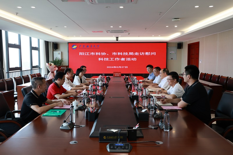 5月27日下午,阳江市科协主席姜树勤,市科技局党组书记、局长张耀一行到校区开展座谈交流。学校党委常委、副校长周昌仕,校区党委副书记丁永成,校区管理办公室副主任张家荣、白浚宇,阳江研究院副院长罗东辉参加活动。