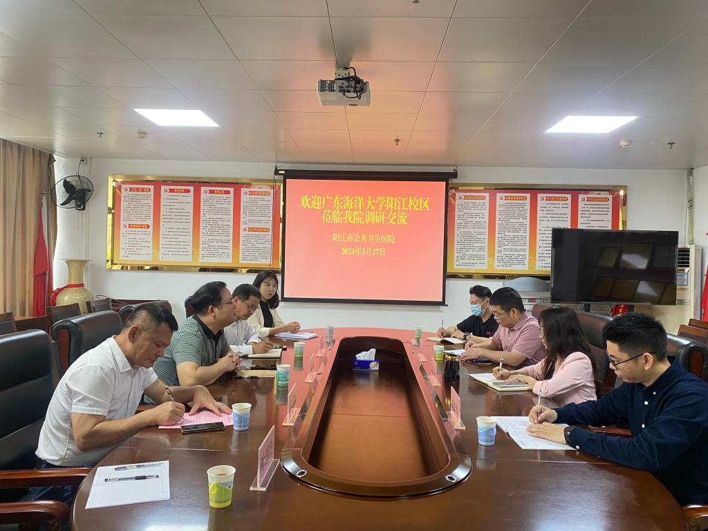 3月27日,校区党委副书记陈永强一行5人到阳江市公共卫生医院调研交流。阳江市公共卫生医院院长梁飞燕、副院长姚正钢组织了座谈交流,组织人事部临时负责人李友清、学生事务部临时负责人翁江峰,心理教师王楠、叶惠玲参加活动。