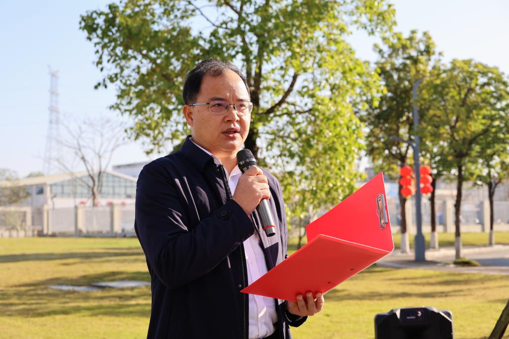 周昌仕代表校区师生对参加本次活动的民盟阳江市委会一行表示热烈的欢迎,并对他们向校区捐赠果树表示衷心的感谢。他指出,本次植树节活动是校区深入学习贯彻习近平生态文明思想,践行“绿水青山就是金山银山”理念的生动体现,也是校区贯彻落实省委“1310”部署绿美广东生态建设,积极响应学校“我为母校种棵树”活动号召,打造人与自然和谐共生的“绿色海大”“美丽海大”的具体实践。他鼓励师生们发扬中华民族爱树植树护树好传统,增强生态文明意识,共同打造绿色、美丽校园,为绿美广东生态建设贡献“海大力量”。