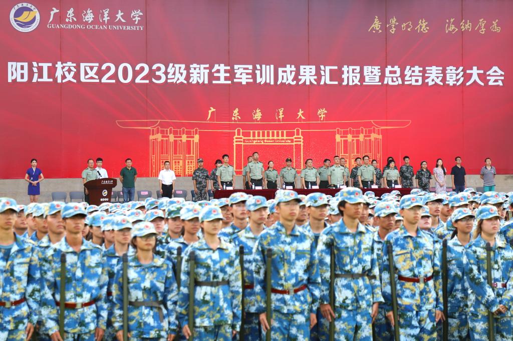 热血铸军魂,青春正当时。9月28日上午,2023级新生军训成果汇报暨总结表彰大会在行健运动场举行。学校党委常委、副校长、阳江校区党委书记、管委会主任宁凌,校区领导周昌仕、陈永强、毛琪,承训单位有关领导出席大会。校区相关职能部门负责人,各学院负责人、全体教官、跟训教师、2023级全体新生等1600多名师生参加大会。校区党委副书记、管委会常务副主任周昌仕主持大会。