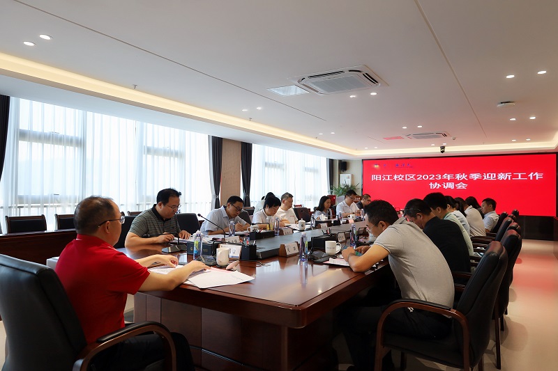 为做好2023年秋季学期迎新工作,确保新生顺利入学,9月5日上午,阳江校区在海纳楼712召开2023年秋季迎新工作协调会,校区党委副书记、管委会常务副主任周昌仕、各职能部门负责人、各学院分管学生工作领导、学生事务部全体人员参会,会议由校区党委委员、管委会副主任陈永强主持。