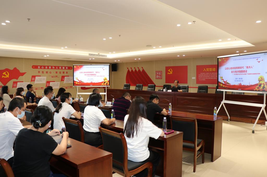授课中,陈永强带领大家原汁原味地学习习近平总书记关于教育的重要论述,强调要坚持把立德树人作为中心环节,把思想政治工作贯穿教育教学全过程,实现全员育人、全程育人、全方位育人。他结合近期到华中地区高校调研体会进行分享,带大家进一步领会习近平总书记关于教育的重要论述内涵,强调要以为党育人、为国育才的初心使命培育新时代“海洋人”。