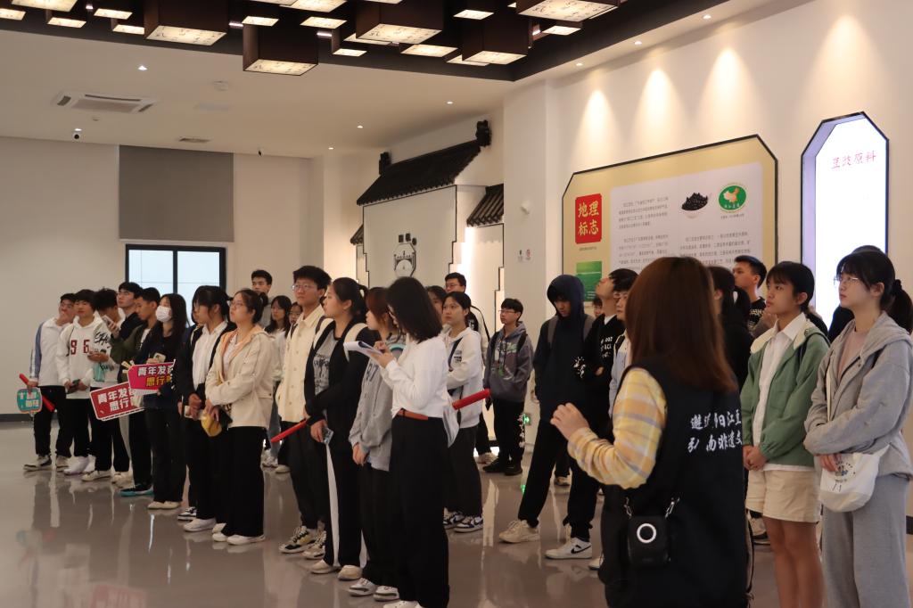 阳江豆豉酿制技艺非遗工坊由广东阳帆食品有限公司作为建设单位。阳江豆豉酿制技艺于2012年入选广东省第四批省级非物质文化遗产名录。在讲解员的引导下,师生们陆续参观了阳帆企业文化展区、豆豉非遗文化展馆,以及豆豉制曲房、露天发酵场和封闭晒场等生产环节,亲眼看到豆豉制作过程,了解了阳江豆豉文化的历史渊源,也感受到豆豉生产技艺和文化魅力。