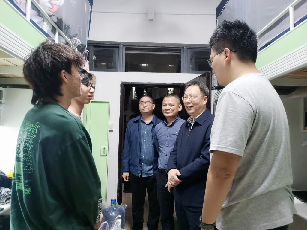 12月8日晚,学校党委副书记、纪委书记、省监委驻校监察专员彭权群走访学生宿舍慰问学生。学生事务部第二负责人翁江峰、学生事务部老师以及学院辅导员代表陪同走访。