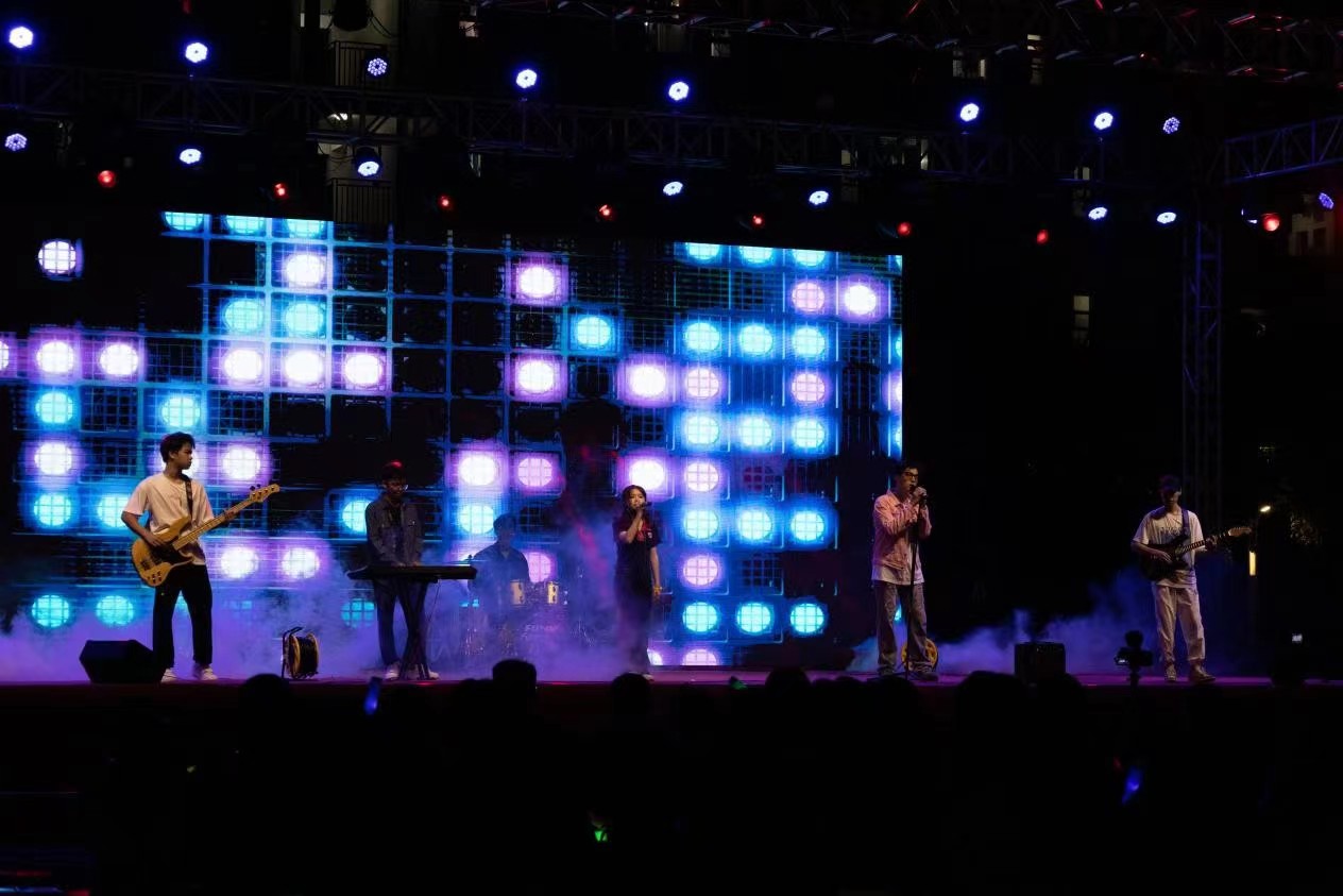 活动中,同学们领取打卡表后便自行前往各个社团摊位了解社团,参与小游戏,去寻找自己心仪的社团。经过一下午的摆摊、社团展示、招新,嘉年华晚会也如期而至。当晚七点,社团嘉年华在动人的光影和曼妙的音乐声中开启了闭幕晚会,晚会现场有深入人心的乐队演唱和个人独唱,有潮流时尚的街舞串烧,有刚柔并济的古典舞表演,也有歌颂青春风华、高扬理想风帆的朗诵,丰富多彩的晚会吸引了众多同学驻足观看,各个社团的倾情表演获得同学们不绝于耳的掌声和喝彩。