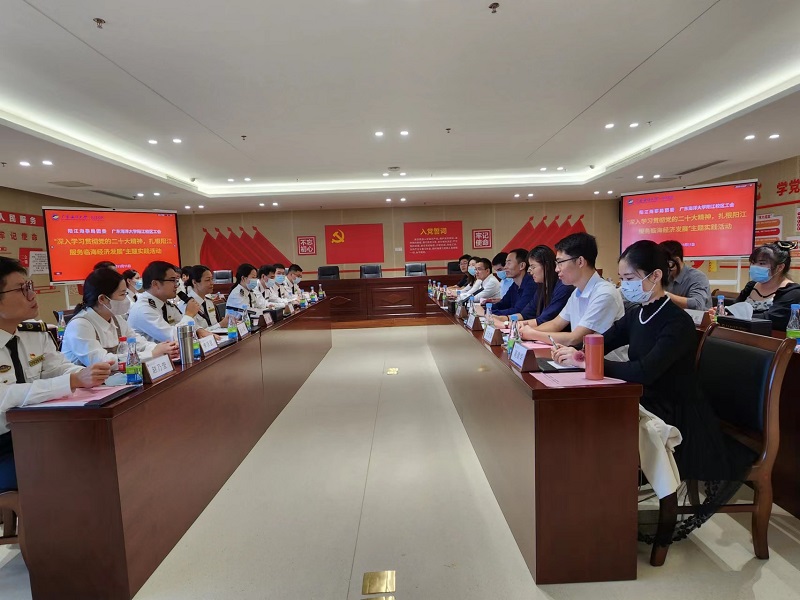 为深入学习贯彻党的二十大精神,落实习近平总书记关于青年工作重要思想,激励广大青年扎根阳江服务临海经济发展,根据校区党委有关学习宣讲方案要求,11月11日下午,校区工会与阳江海事局团委联合开展“深入学习贯彻党的二十大精神,扎根阳江服务临海经济发展”主题实践活动,阳江海事局党工部主任黎瑛、船舶监督处处长王国芬、团委书记段小军及青年干部一行17人到今年会官网交流党的二十大精神学习体会,校区工会委员会部分委员、组织人事部人员、各单位青年教师代表参会,校区管委会委员、工会主席、组织人事主要负责人李鹏虹主持活动。