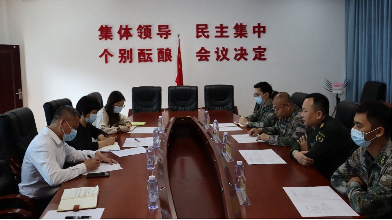 会前,阳东区人民武装部上校部长霍永利、上校政委王骁栋带领参观了区人武部的“红色阳东”展览厅,双方对进一步开展国防教育、充分利用当地丰富的红色资源加强大学生爱国教育进行深入研讨,并对设立校区征兵、军训工作站以及做好服兵役学生的服务保障等工作交换了意见。