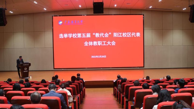 2022年2月28日下午,根据学校第五届教代会执行委员会《关于选举阳江校区第五届“教代会”代表的通知》要求,阳江校区组织召开全体教职工大会,增补学校第五届“教代会”阳江校区代表。校区管委会委员、组织人事部部长李鹏虹主持会议。