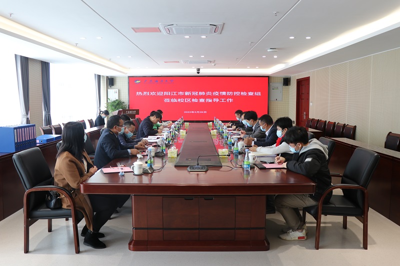 2月25日上午,阳江市新冠肺炎疫情防控检查组到校区进行检查指导。检查组组长、市教育局二级调研员关杰光一行实地走访了疫情防控重点区域,仔细查看相关台账,并召开座谈会,听取有关汇报。校区党委副书记、管委会常务副主任周昌仕参加活动。
