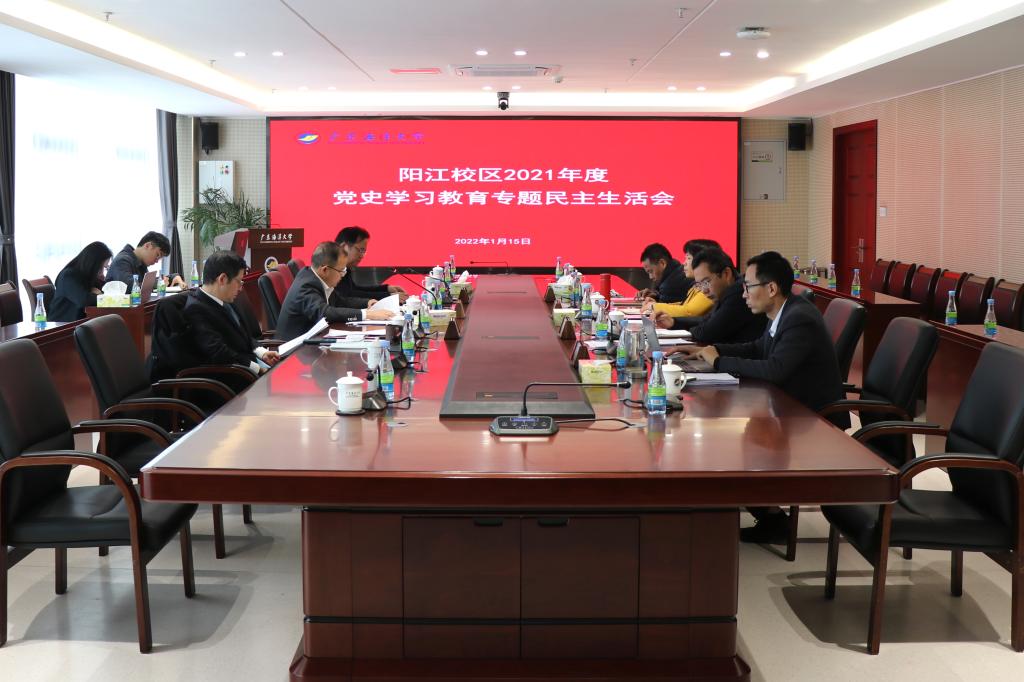 经上级党组织批准,1月15日,阳江校区党委领导班子在校区海纳楼712会议室召开2021年度党史学习教育专题民主生活会。校区党委领导班子成员参加会议,校区管委会成员列席会议。受校党委常委、副校长,校区党委书记、管委会主任宁凌的委托,会议由校区党委副书记、管委会常务副主任周昌仕主持。