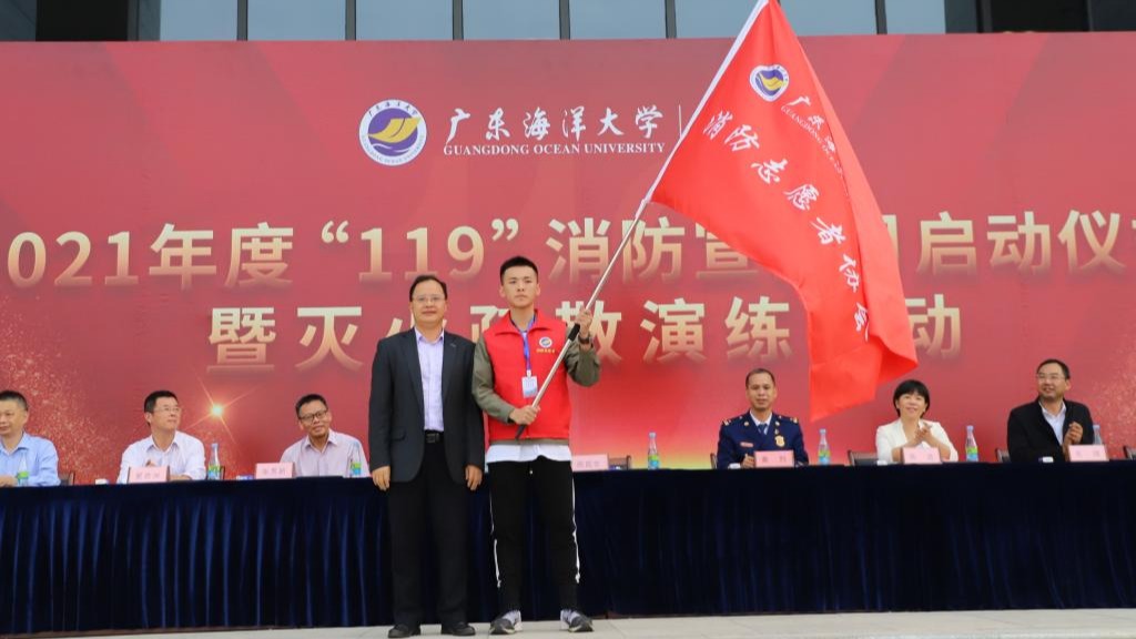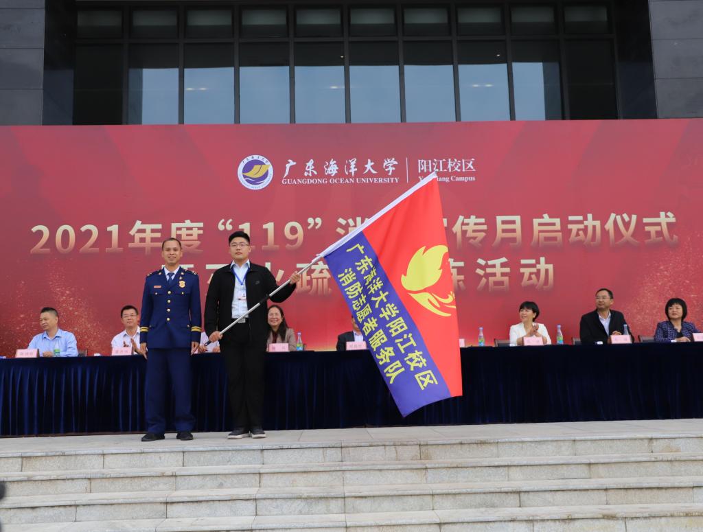 启动仪式在庄严的国歌声中拉开序幕,徐兵对今年校区“119”消防安全宣传月活动进行了部署,高进宣读了阳江校区大学生消防志愿者协会成员名单,主席台领导为志愿者颁发了工作证,黄烈、周昌仕分别为消防志愿者服务队和消防志愿者协会授旗。