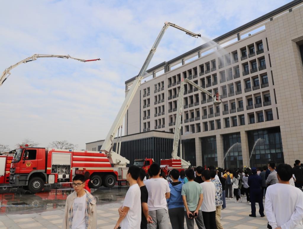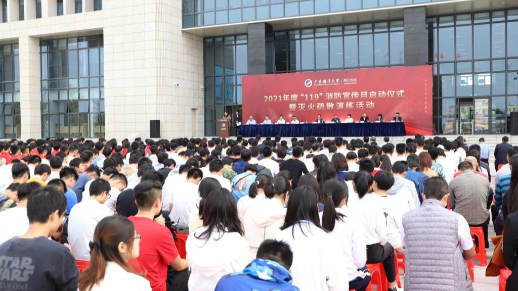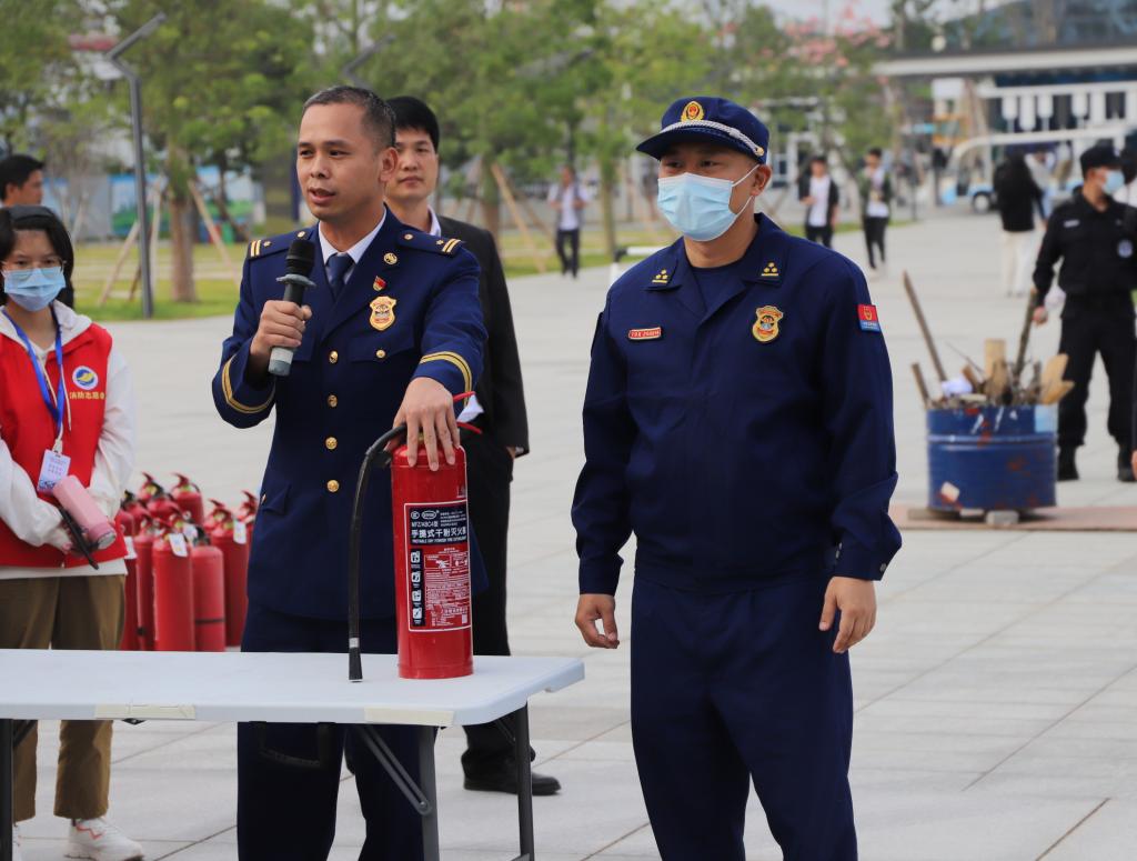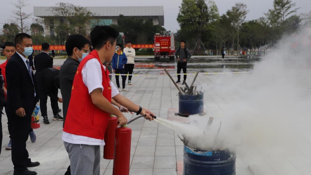 11月17日下午3:00,阳江校区在锦绣广场举行2021年度“119”消防宣传月启动仪式暨灭火疏散演练活动,阳江市消防救援支队副队长黄烈,阳江校区党委副书记、管委会常务副主任周昌仕,管委会副主任徐兵、高进、张界新、毛琪出席活动,校区各单位部门的领导、老师和全体同学约800人参加了启动仪式和演练活动。启动仪式和演练活动由后勤保障部第一负责人袁仁广主持。