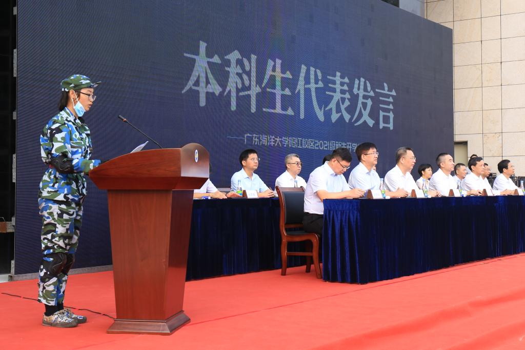 机械与能源工程学院肖婧仪同学作为2021级本科生代表发言。她自豪能成为阳江校区的首届“开拓者”,号召同学们要传承“广学明德,海纳厚为”的海大精神,要用所学的知识造福人民、造福社会、造福国家,担当责任,不负韶华。