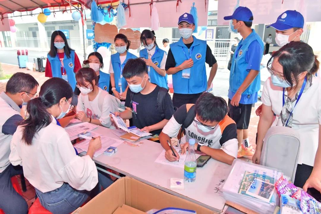 工商管理专业新生叶鸿铭来自深圳,9日就跟爸妈自驾抵达阳江。跟不少新生家长一样,他们先到海陵岛玩了两天才到校区报到,“应征当志愿者,是希望尽快适应学校,也想帮助其他同学。来了几天,觉得学校环境不错。”跟叶鸿铭一样,张道源来自商学院,就读会计学专业,10日从汕头坐高铁来到阳江。