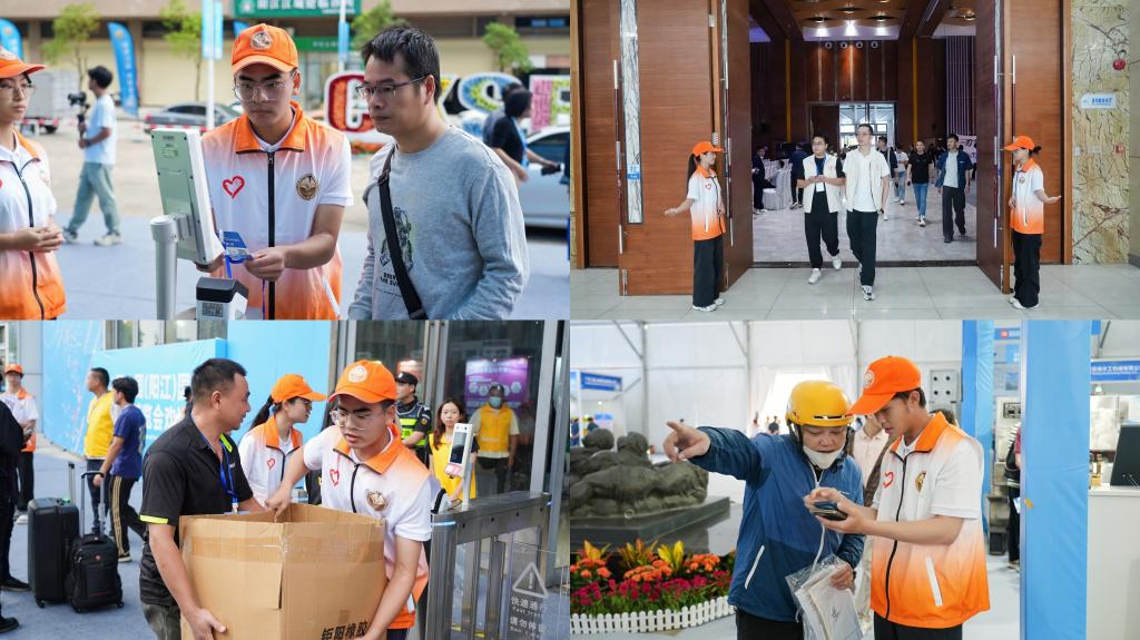 展会期间,阳江校区的青年志愿者们始终坚守岗位、热情服务。在展会入口处,他们耐心引导参展嘉宾完成扫码登记,协助维护入场秩序;在展区内,他们化身“活地图”,为咨询展位、寻求帮助的宾客提供精准指引;面对各类疑问,他们始终面带微笑、细致解答,以专业的态度和扎实的作风,为参展商与采购商搭建起便捷沟通的桥梁。志愿者们忙碌的身影成为展会上一道亮丽的青春风景线,有效保障了展会各项环节的有序推进,充分展现了阳江校区学子昂扬向上的精神风貌与勇于担当的青春本色。
