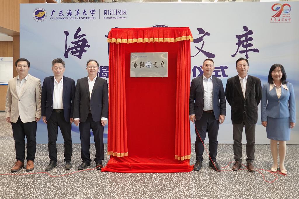 揭牌仪式环节,周昌仕、麦冬宁、陈扬枝、李力、李中及林耀庭上台共同为海阳文库揭牌,这标志着海阳文库的正式启用。作为校区图书馆重点打造的学术典藏工程,文库承载着系统收藏、展示校区教职工学术成果,弘扬学术精神,构筑校区文化记忆长廊的重要使命。